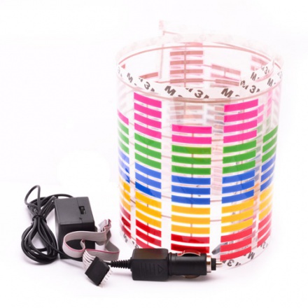 Эквалайзер приклеивается на заднее стекло автомобиля на липкий слой, питание подключается в прикуриватель на 12В. Работает от автомагнитолы, громкость музыки регулирует пики подскакивают. В комплекте идет блок управления EQ через него можно настроить скорость передвижения ступений эквалайзера.